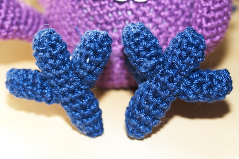 1. Пришить лапки и крылья к туловищу.