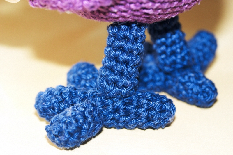 6 ряд: провязать без прибавок [= 21 ст. б/н]. Оборвать нить. Вложить в клюв наполнитель.